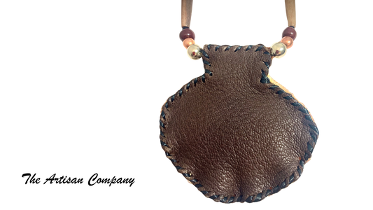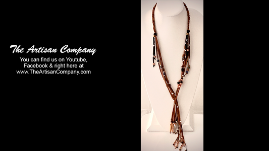 Leather Lariat Necklace with Dumortierite Stone and Buffalo Horn