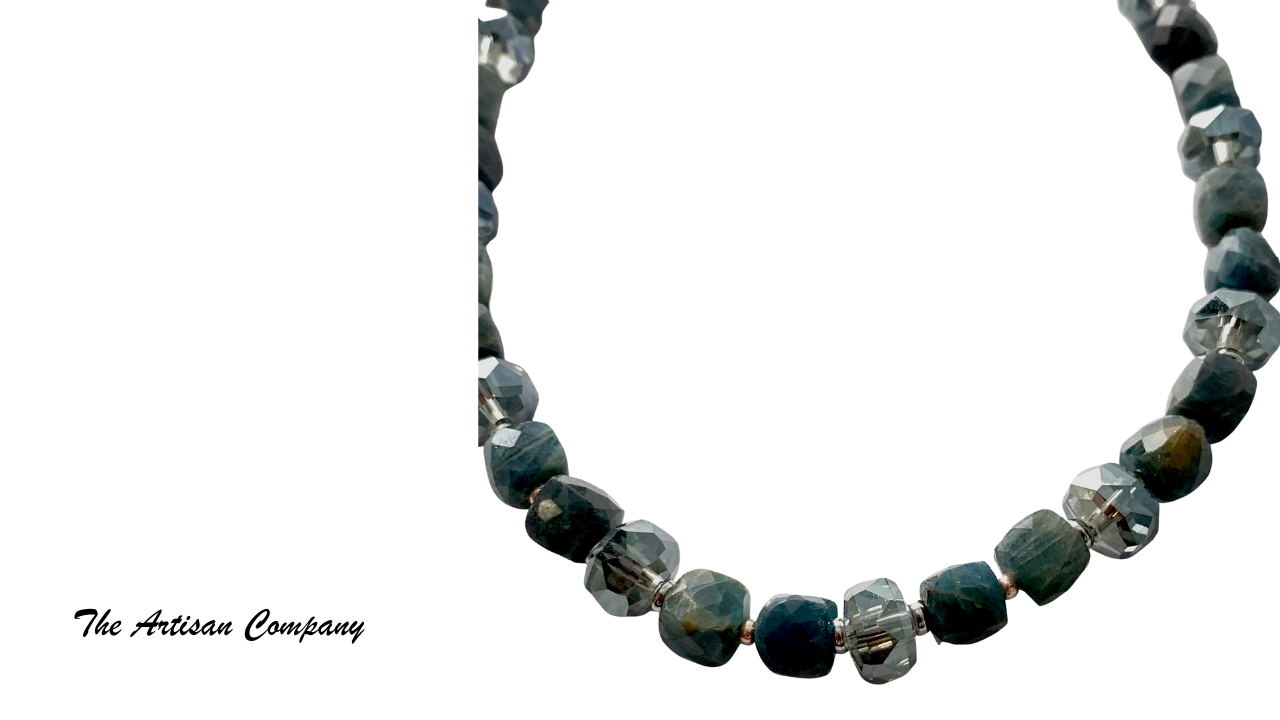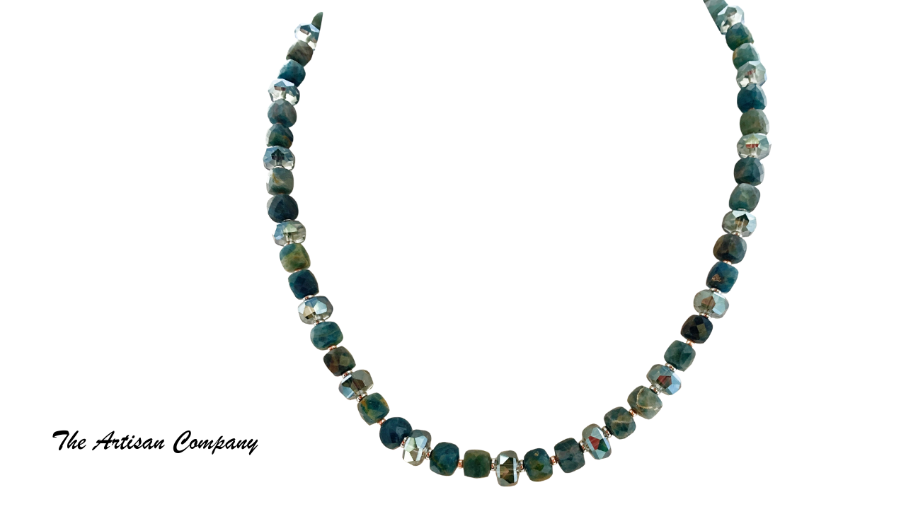 Blue Apatite Stone and Cut Glass Necklace with Earrings