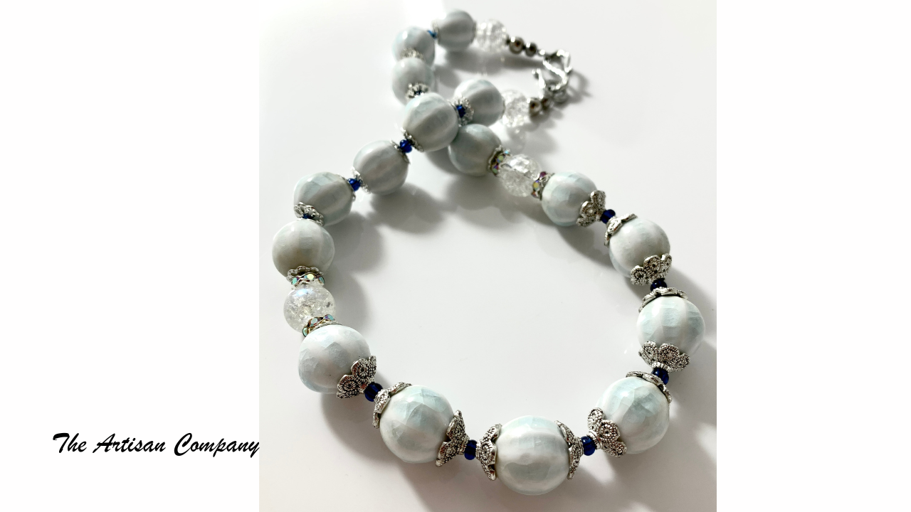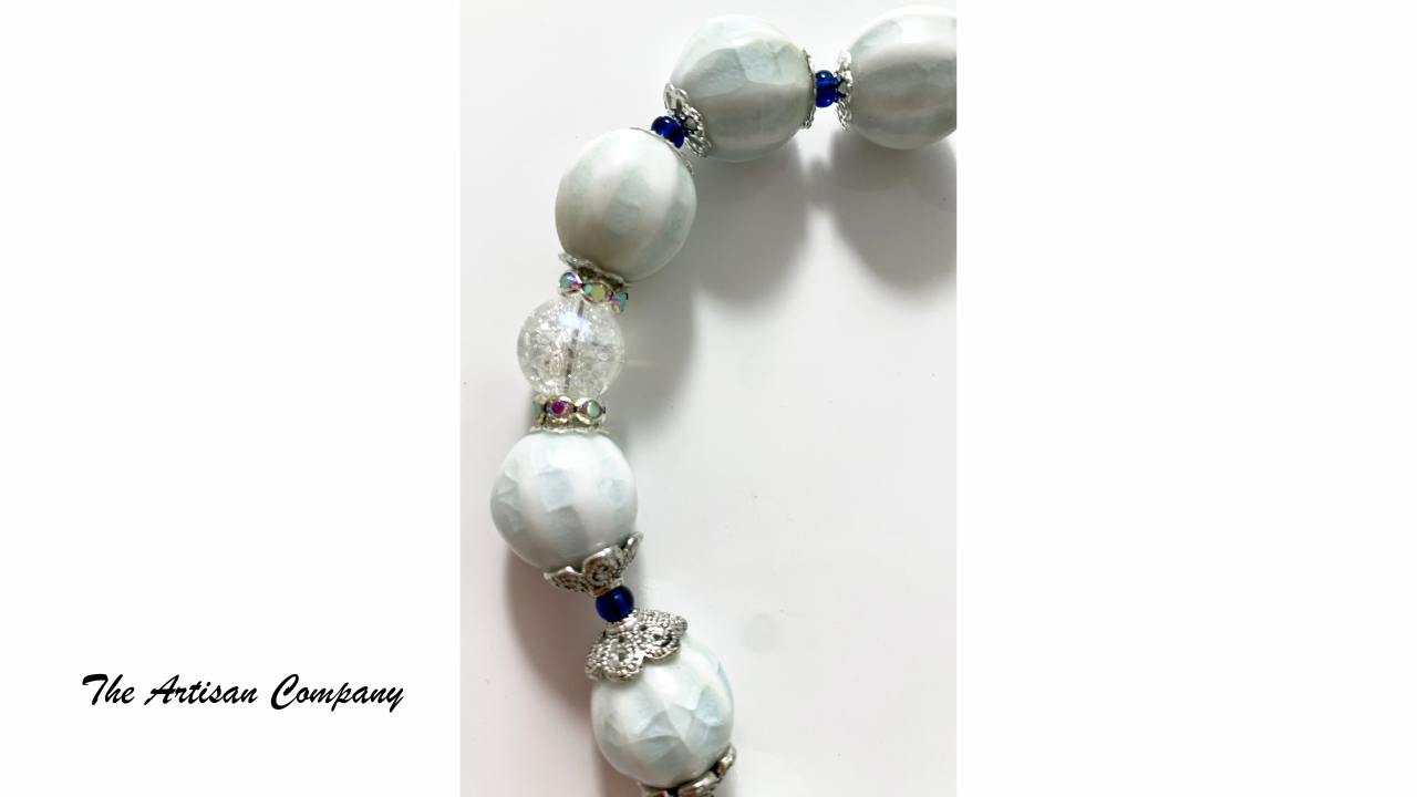 • Beautiful White with Aqua Accents, Ceramic Pumpkin Style Beads 15mm